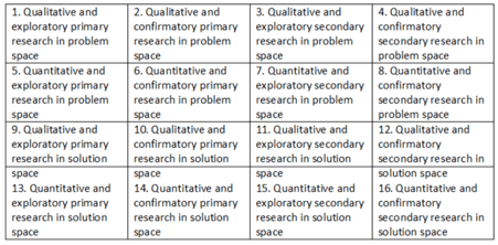 - First and third row are dedicated to qualitative research, second and fourth to quantitative